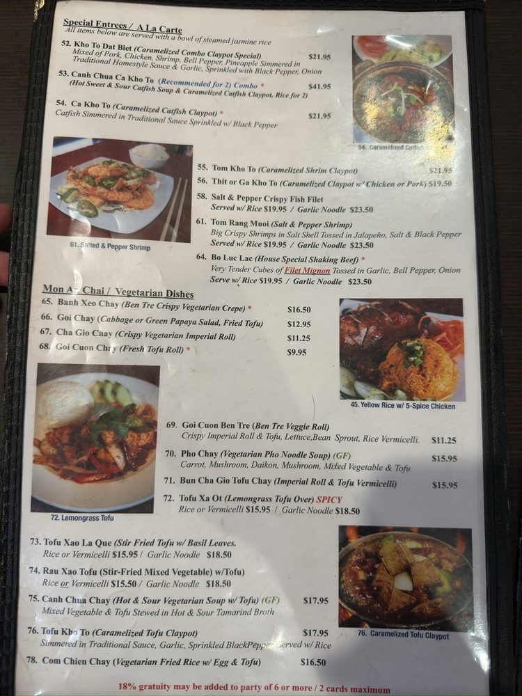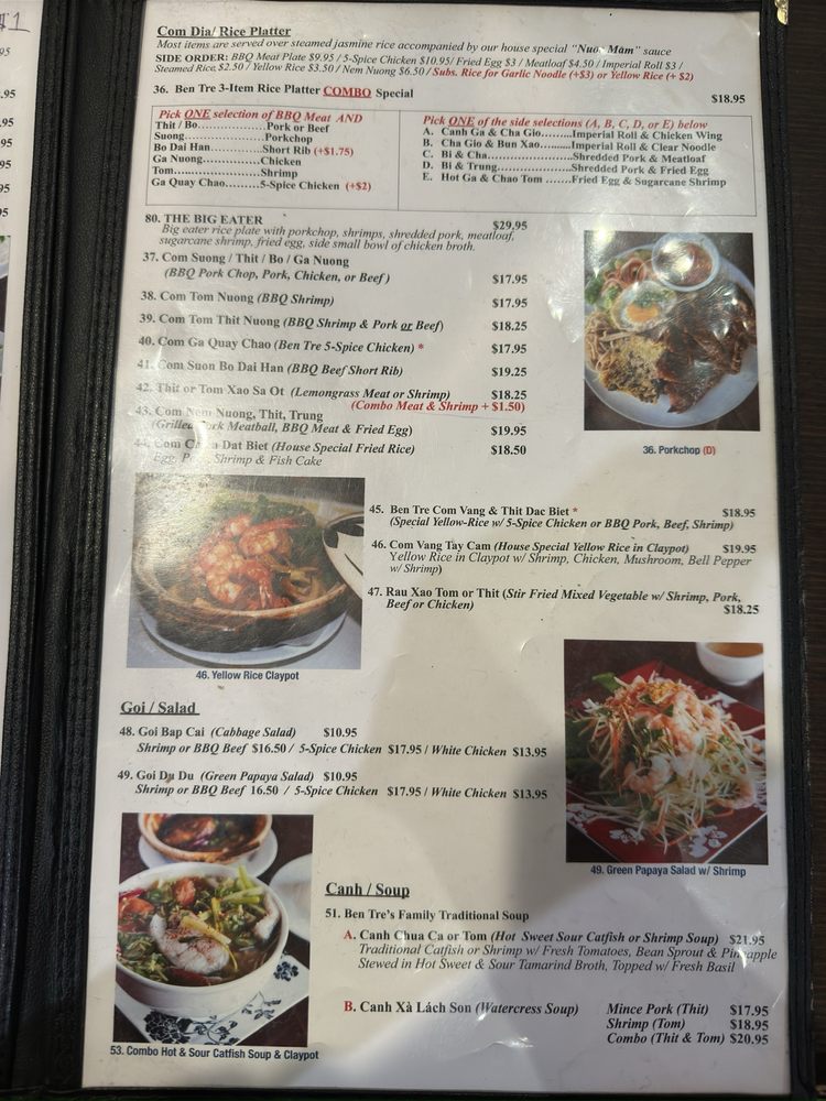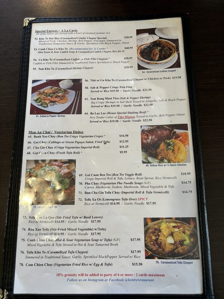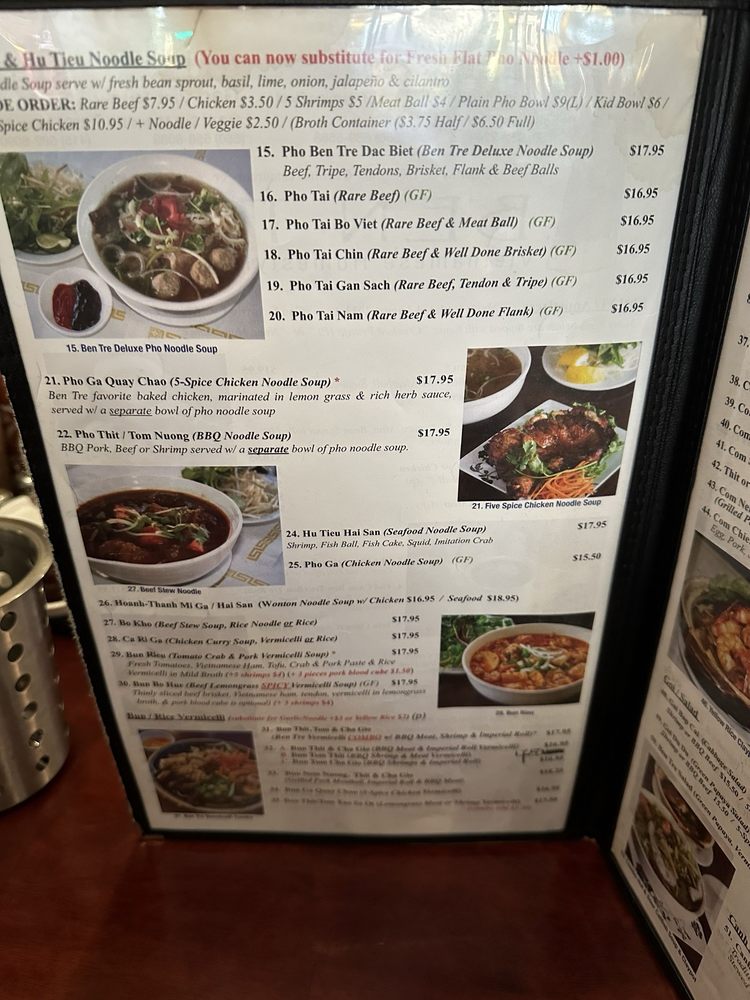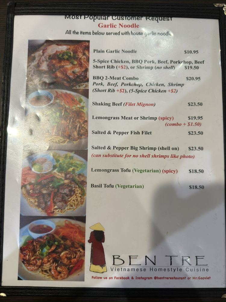 Ben Tre Vietnamese Homestyle Cuisine offers a delightful blend of traditional Vietnamese dishes in a casual setting. Located in South San Francisco, this restaurant provides a wide range of options, from appetizers like the Ben Tre Appetizer Combo to flavorful Goi Salads and Pho Hu Tieu Noodle Soup selections. Customers rave about the Bun Rieu, Fresh Spring Rolls, and Green Papaya Salad, highlighting the diverse textures and rich flavors of the cuisine. The restaurant's commitment to customer satisfaction is evident in their accommodating options for vegan, vegetarian, and allergy-sensitive diners. With quick service and a warm atmosphere, Ben Tre is a go-to spot for authentic Vietnamese homestyle cooking in the Bay Area.